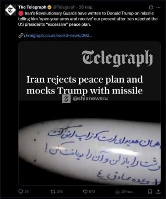 Ранее израильский телеканал N12 обнародовал содержание 15 пунктов мирного соглашения между США и Ираном, подготовленного Белым домом. В рамках этого плана предусматривается, в частности, отмена экономических санкций и содействие в реализации ядерной программы.